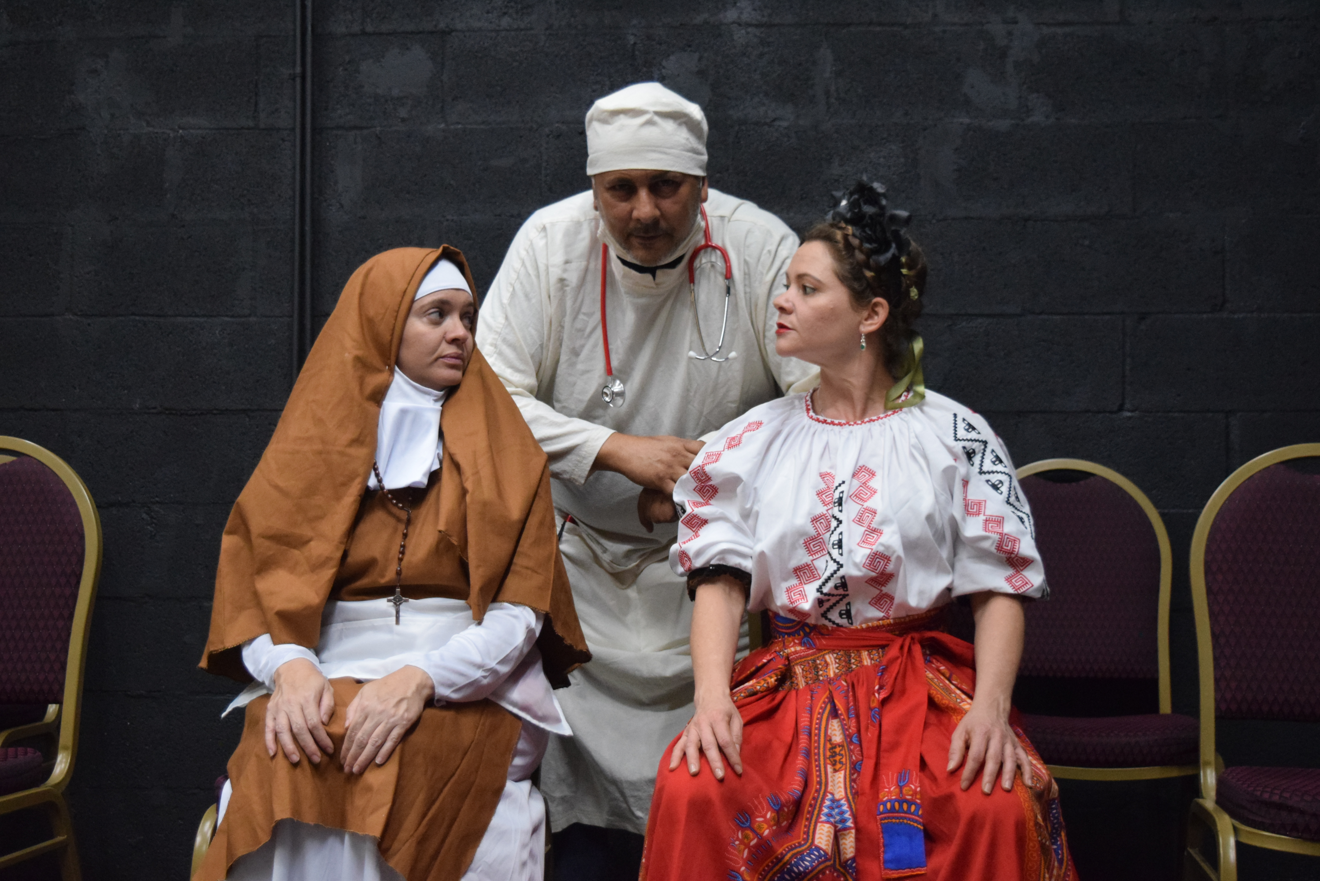 «El doctor es un hombre que atiende a La Pintora y apenas tiene contacto con La Monja. El personaje (originalmente) eran dos doctores y aquí se funden en uno, en un personaje casi nuevo, sin tergiversar casi nada el texto. No nos pusimos a reescribir el texto de Norge», aclara.