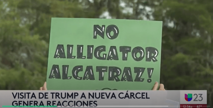 Mientras tanto, varias organizaciones pro inmigración y ambientalistas protestaron de nuevo hoy por el avance de este proyecto que albergará a unos 5.000 inmigrantes sobre la pista de un antiguo aeropuerto ubicado en Ochopee, en el corazón del Parque Nacional de los Everglades al sur de Florida. Se trata del impresionante ecosistema subtropical que protege 640.000 hectáreas de humedal y que fue declarado Patrimonio de la Humanidad por la UNESCO, además de Reserva Internacional de la Biosfera.