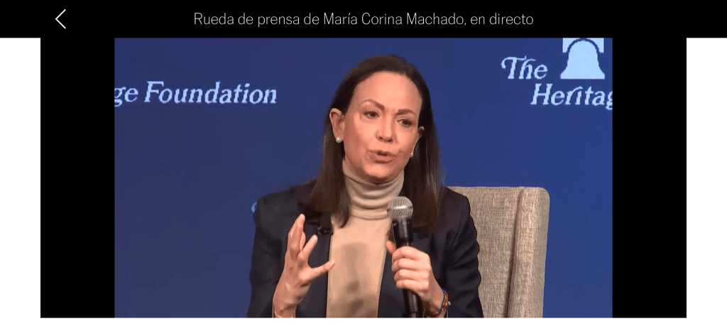 Sentada frente a la prensa en una sala del centro de estudios estadounidense de tendencia conservadora The Heritage Foundation, y ante la pregunta de qué garantías hay en estos momentos para efectuar una transición, Machado aseguró que ya en Venezuela «hay un sector desmantelando a otro».